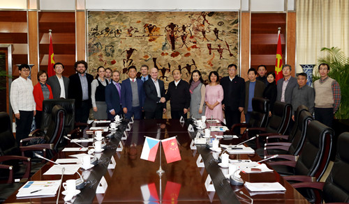 2018年1月4日,捷克教育代表团一行10人在捷克新丝绸之路商会北京办公室的协调下到访我校,代表团外宾成员主要来自捷克帕拉斯特(PALESTRA)私立体育大学和西波西米亚大学。我校党委书记曹卫东会见了代表团,并向来访代表团简要介绍了365bet游戏网站的基本情况,表达了学校对于与捷克高校国际合作的大力支持。捷克帕拉斯特PALESTRA私立体育大学校长和西波西米亚大学代表也分别介绍了该校的基本情况、优势资源和合作意向。双方就在学生交流、师生交流、科研合作、文化互鉴、文化推广、联合培养等各方面的合作进行了深入讨论。陪同参加会见的还有艺术学院院长马鸿韬、竞技体育学院院长马冰、教育学院院长王华倬、武术学院院长马学智、管理学院副院长林显鹏、教务处副处长章潮晖、科技处副处长朱晓兰、体育工程学院曹润、国际交流与合作处副处长花勇民及翻译吴俊老师。
